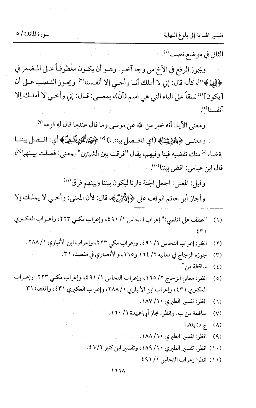 ويجوز الرفع في الأخ من وجه آخر: وهو أن يكون معطوفاً على المضمر في {أَمْلِكُ}، كأنه قال: إني لا أملك أنا وأخي إلا أنفسنا. ويجوز النصب على أن [يكون] نسقاً على الياء التي هي اسم (أنّ)، بمعنى قال: إني وأخي لا أملك إلا أنفسنا.