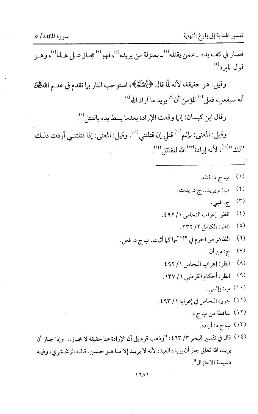 وقيل: هو حقيقة، لأنه لمّا قال {لأَقْتُلَكَ}، استوجب النار بما تقدم في علم الله D أنه سيفعل، فعلى المؤمن أن يريد ما أراد الله.