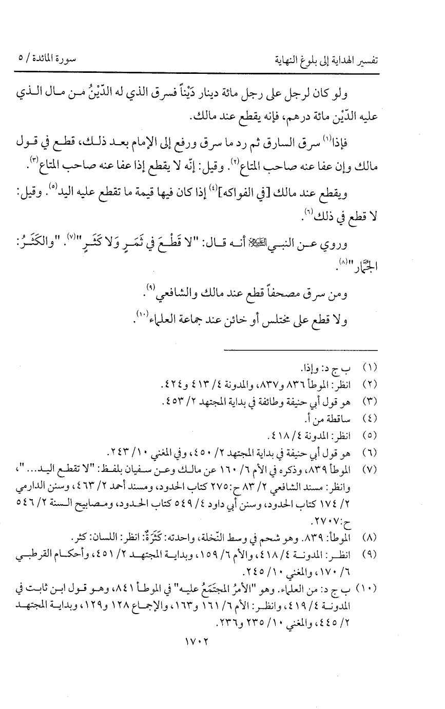 ومن سرق مصحفاً قطع عند مالك والشافعي.