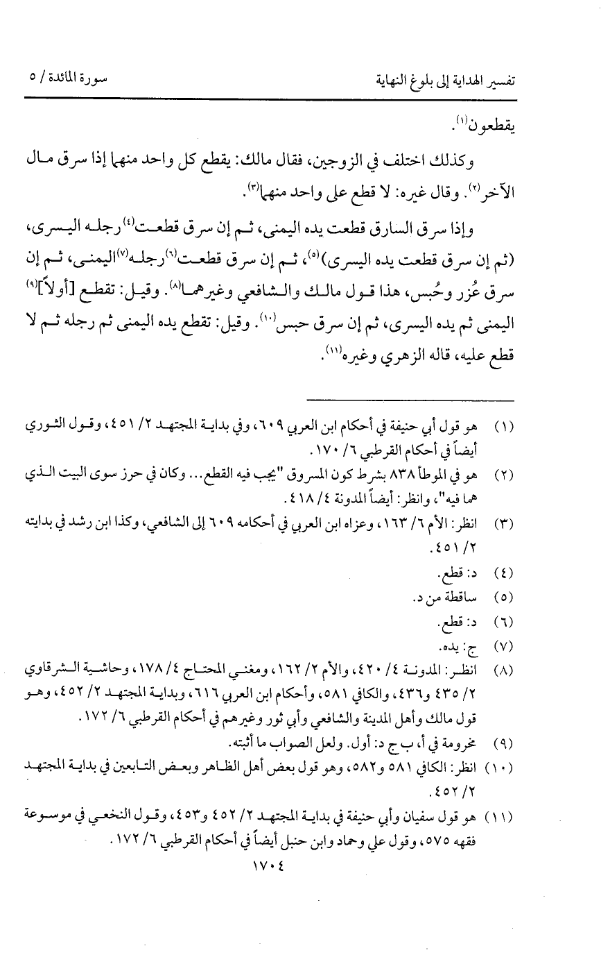 وإذا سرق السارق قطعت يده اليمنى، ثم إن سرق قطعت رجله اليسرى، (ثم إن سرق قطعت يده اليسرى)، ثم إن سرق قطعت رجله اليمنى، ثم إن سرق عُزر وحُبس، هذا قول مالك والشافعي وغيرهما. وقيل: تقطع [أولاً] اليمنى ثم يده اليسرى، ثم إن سرق حبس. وقيل: تقطع يده اليمنى ثم رجله ثم لا قطع عليه، قاله الزهري وغيره.