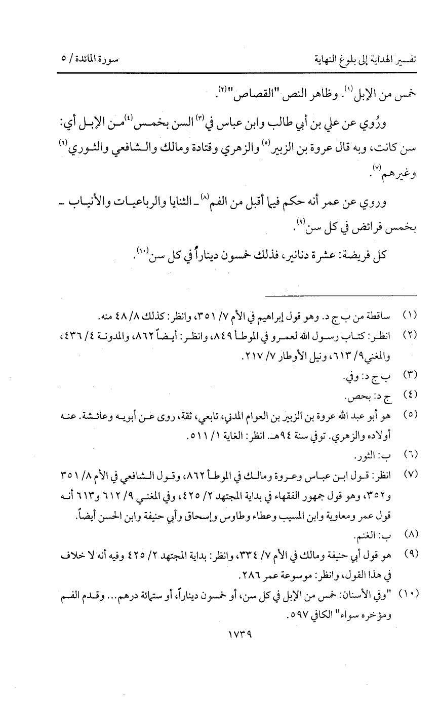 ورُوي عن علي بن أبي طالب وابن عباس في السن بخمس من الإبل أي: سن كانت، وبه قال عروة بن الزبير والزهري وقتادة ومالك والشافعي والثوري وغيرهم.