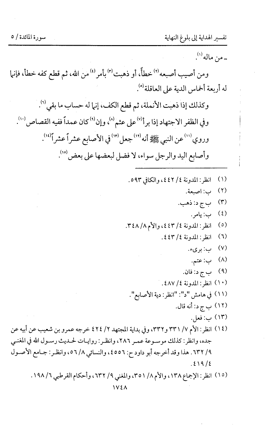 ومن أصيب أصبعه خطأً، أو ذهبت بأمر من الله، ثم قطع كفه خطأ، فإنما له أربعة أخماس الدية على العاقلة.