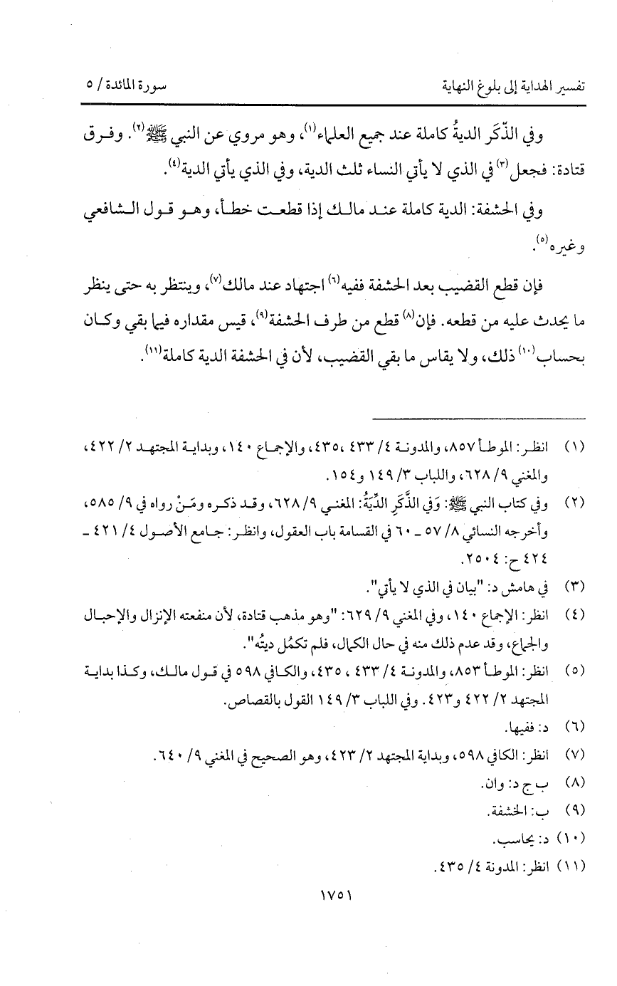وفي الحشفة: الدية كاملة عند مالك إذا قطعت خطأ، وهو قول الشافعي وغيره.