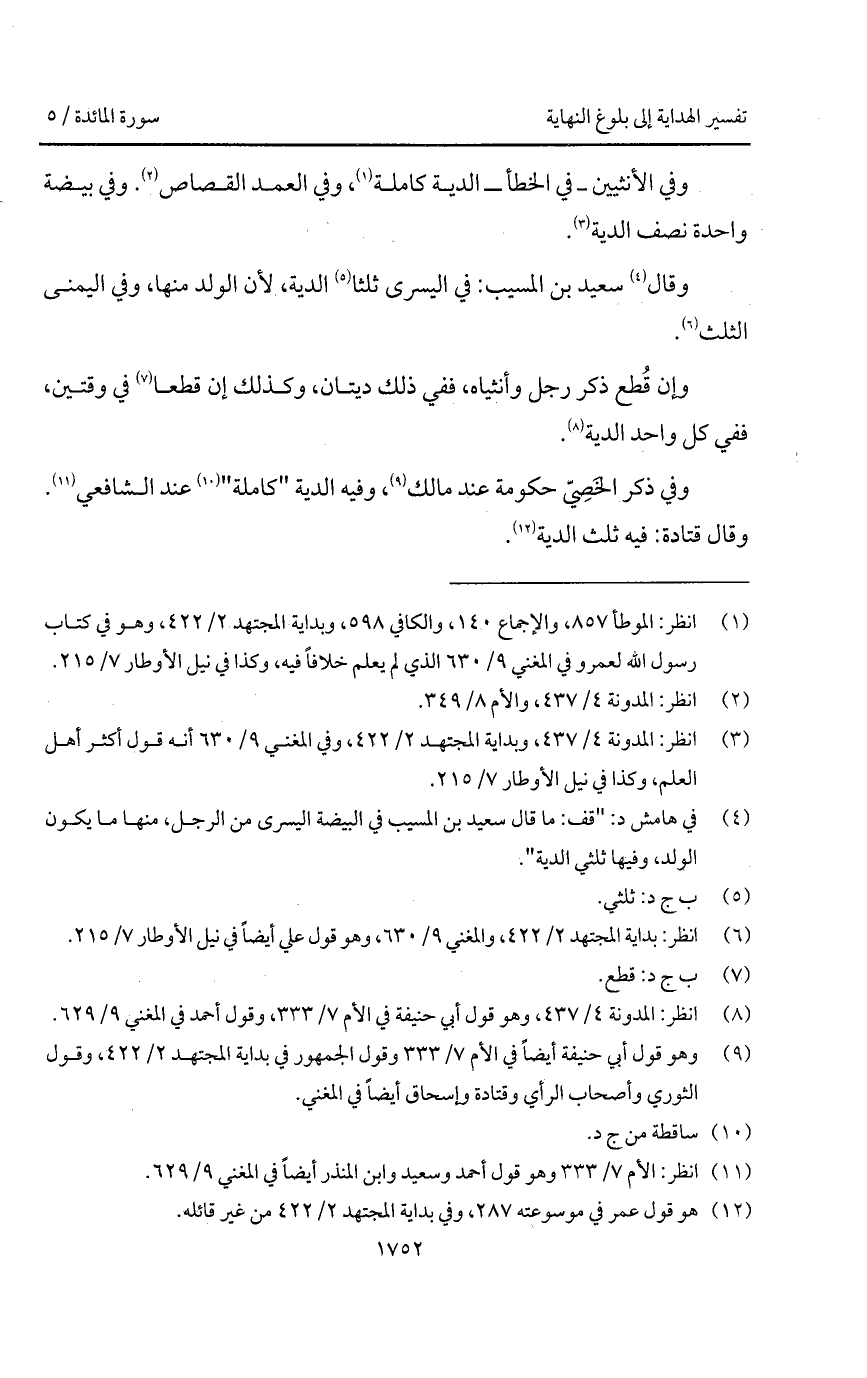 وفي الأنثيين - في خطأ - الدية كاملة، وفي العمد القصاص. وفي بيضة واحدة نصف الدية.