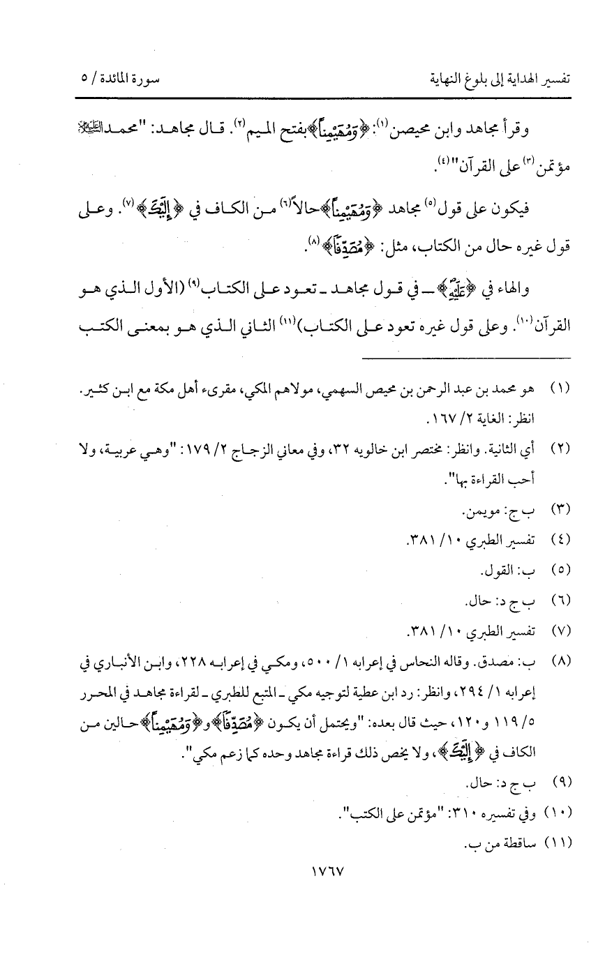 فيكون على قول مجاهد {وَمُهَيْمِناً} حالاً من الكاف في {إِلَيْكَ}. وعلى قول غيره حال من الكتاب، مثل: {مُصَدِّقاً}.