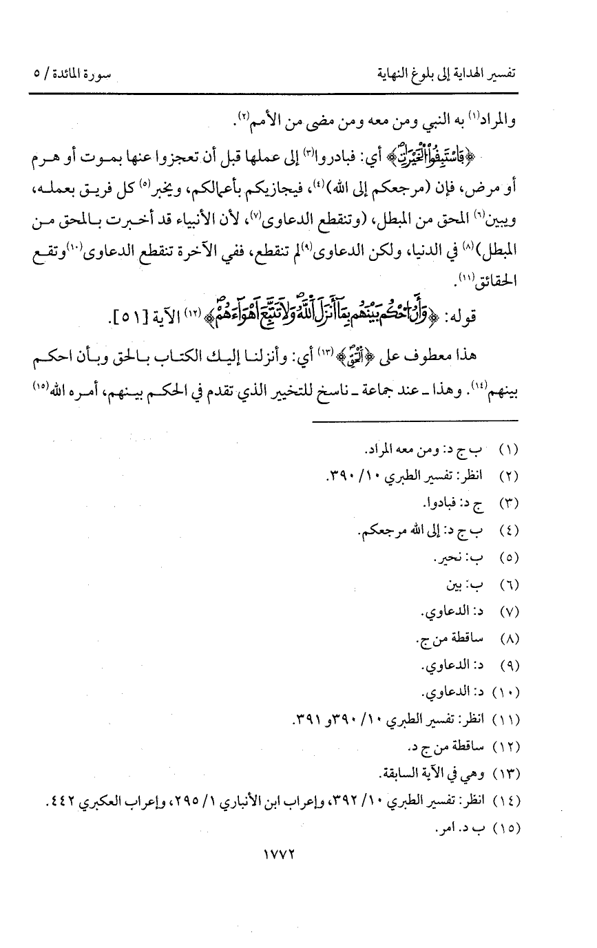 {فَاسْتَبِقُوا الخَيْرَاتِ} أي: فبادروا إلى عملها قبل أن تعجزوا عنها بموت أو هرم أو مرض، فإن (مرجعكم إلى الله)، فيجازيكم بأعمالكم، ويخبر كل فريق بعمله، ويبين المحق من المبطل، (وتنقطع الدعاوى، لأن الأنبياء قد أخبرت بالمحق من المبطل) في الدنيا، ولكن الدعاوى لم تنقطع، ففي الآخرة تنقطع الدعاوى وتقع الحقائق.