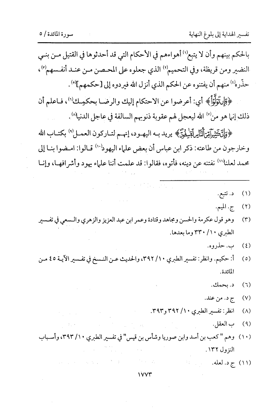 بالحكم بينهم وأن لا يتبع أهواءهم في الأحكام التي قد أحدثوها في القتيل من بني النضير ومن قريظة، وفي التحميم الذي جعلوه على المحصن من عند أنفسهم، حذّره منهم أن يفتنوه عن الحكم الذي أنزل الله فيردوه إلى [حكمهم].