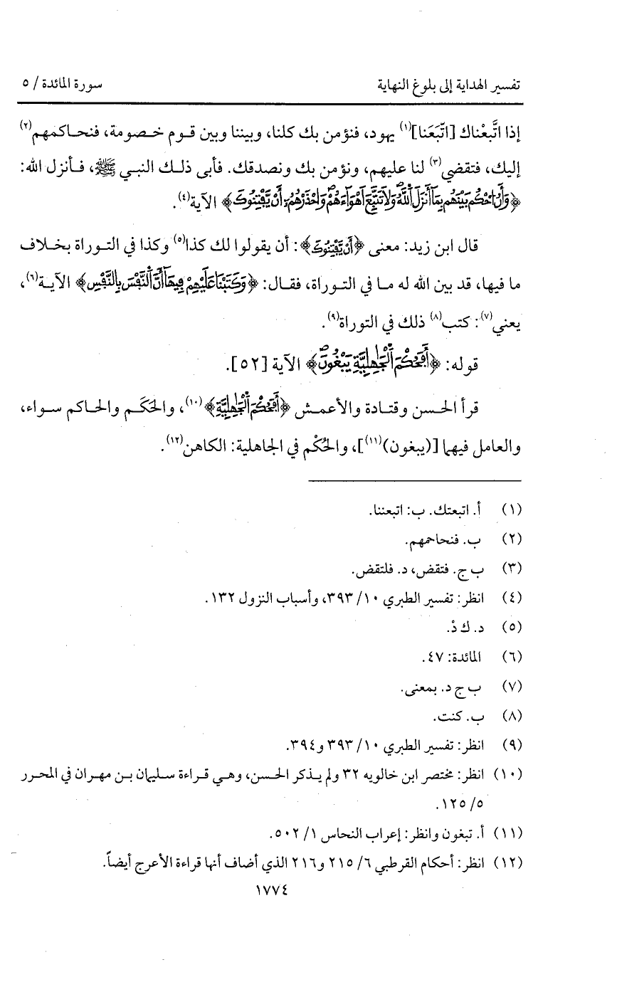 إذا اتَّبعْناك [اتّبَعَنا] يهود، فنؤمن بك كلنا، وبيننا وبين قوم خصومة، فنحاكمهم إليك، فتقضي لنا عليهم، ونؤمن بك ونصدقك. فأبى ذلك النبي A، فأنزل الله: {وَأَنِ احكم بَيْنَهُمْ بِمَآ أَنزَلَ الله وَلاَ تَتَّبِعْ أَهْوَآءَهُمْ واحذرهم أَن يَفْتِنُوكَ} الآية.