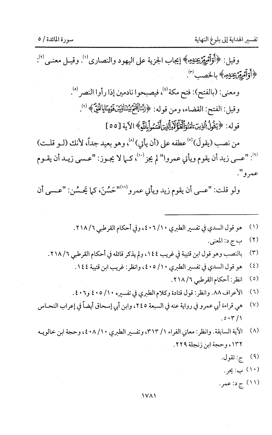 من نصب (يقولَ) عطفه على (أن يأتي)، وهو بعيد جداً، لأنك (لو قلت): " عسى زيد أن يقوم ويأتي عمروا " لم يجز، كما لا يجوز: " عسى زيد أن يقوم عمرو ".