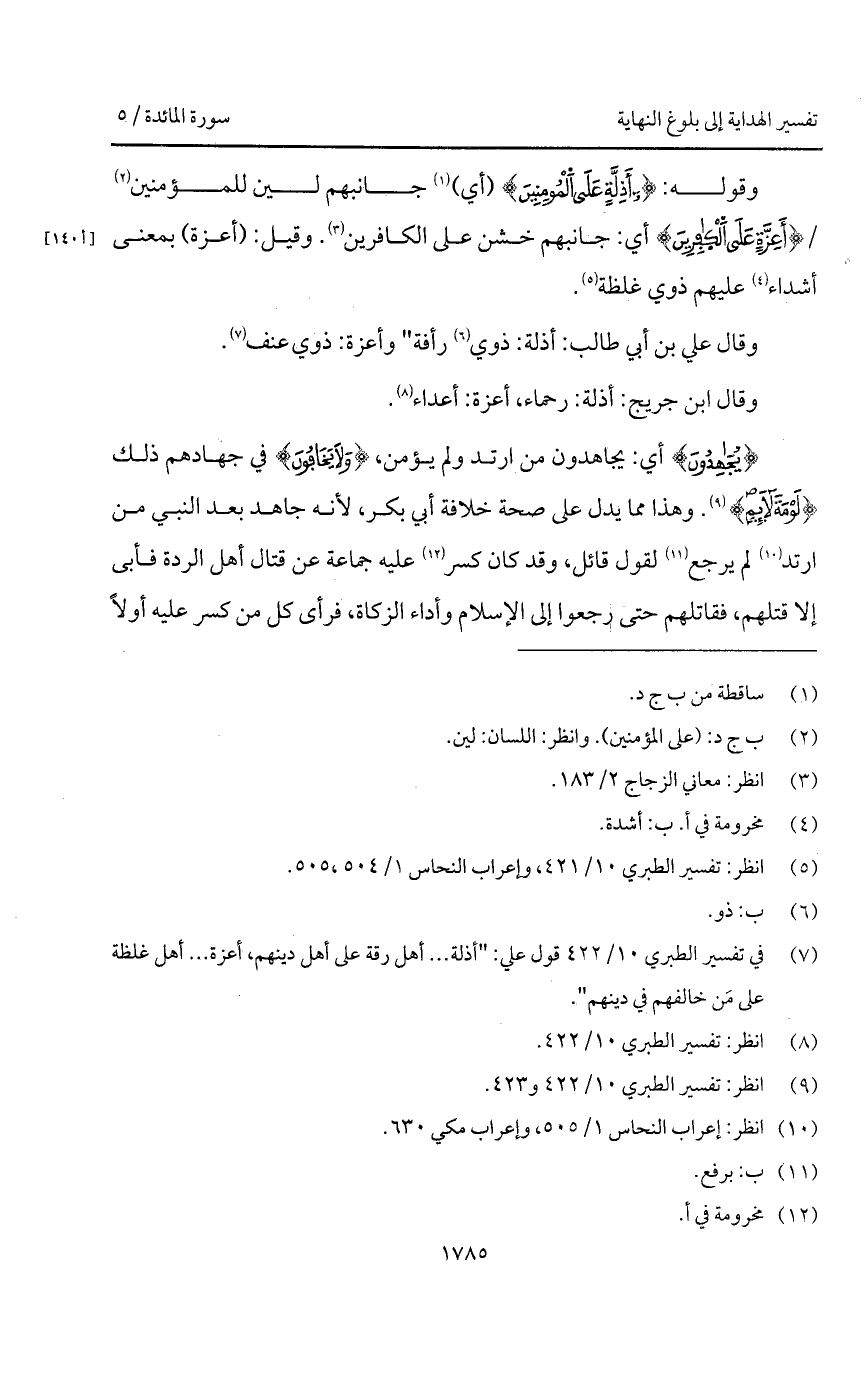 وقال علي بن أبي طالب: أذلة: ذوي رأفة " وأعزة: ذوي عنف.