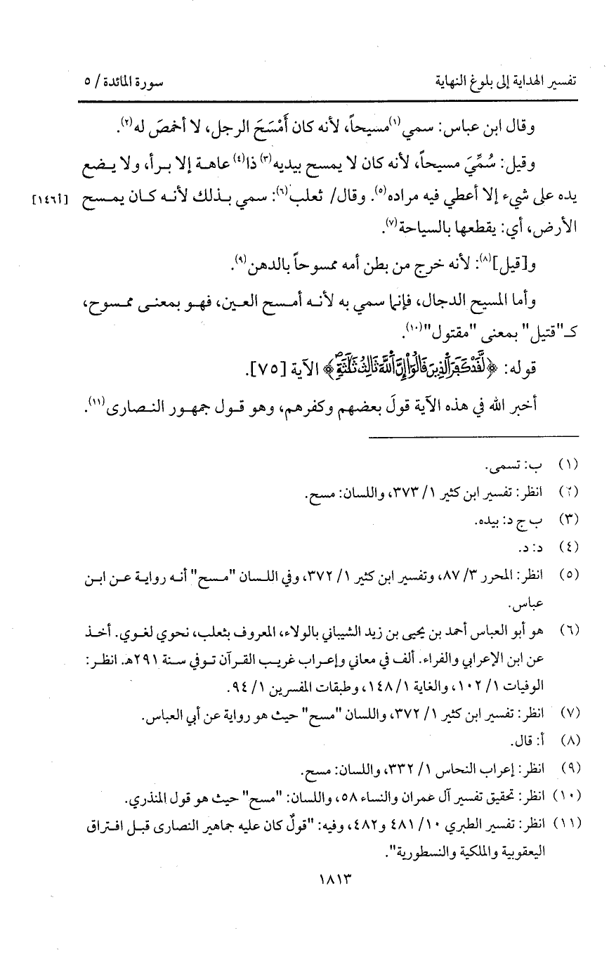 وقيل: سُمِّيَ مسيحاً، لأنه كان لا يمسح بيديه ذا عاهة إلا برأ، ولا يضع يديه على شيء إلا أعطي فيه مراده. وقال / ثعلب: سمي بذلك لأنه كان يمسح الأرض، أي: يقطعها بالسياحة.