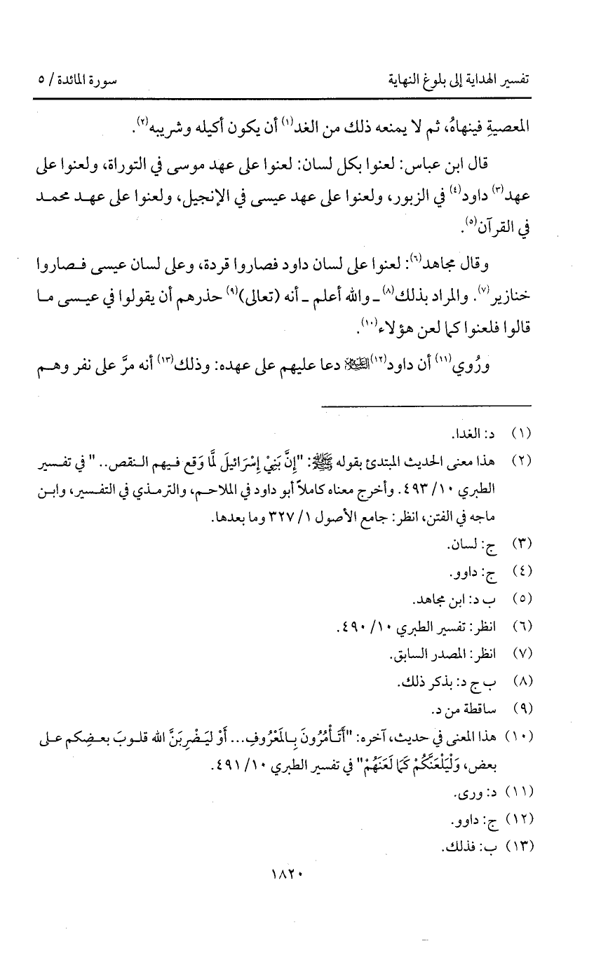 وقال مجاهد: لعنوا على لسان داود فصاروا قردة، وعلى لسان عيسى فصاروا خنازير. والمراد بذلك - والله أعلم - أنه (تعالى) حذرهم أن يقولوا في عيسى ما قالوا فلعنوا كما لعن هؤلاء.