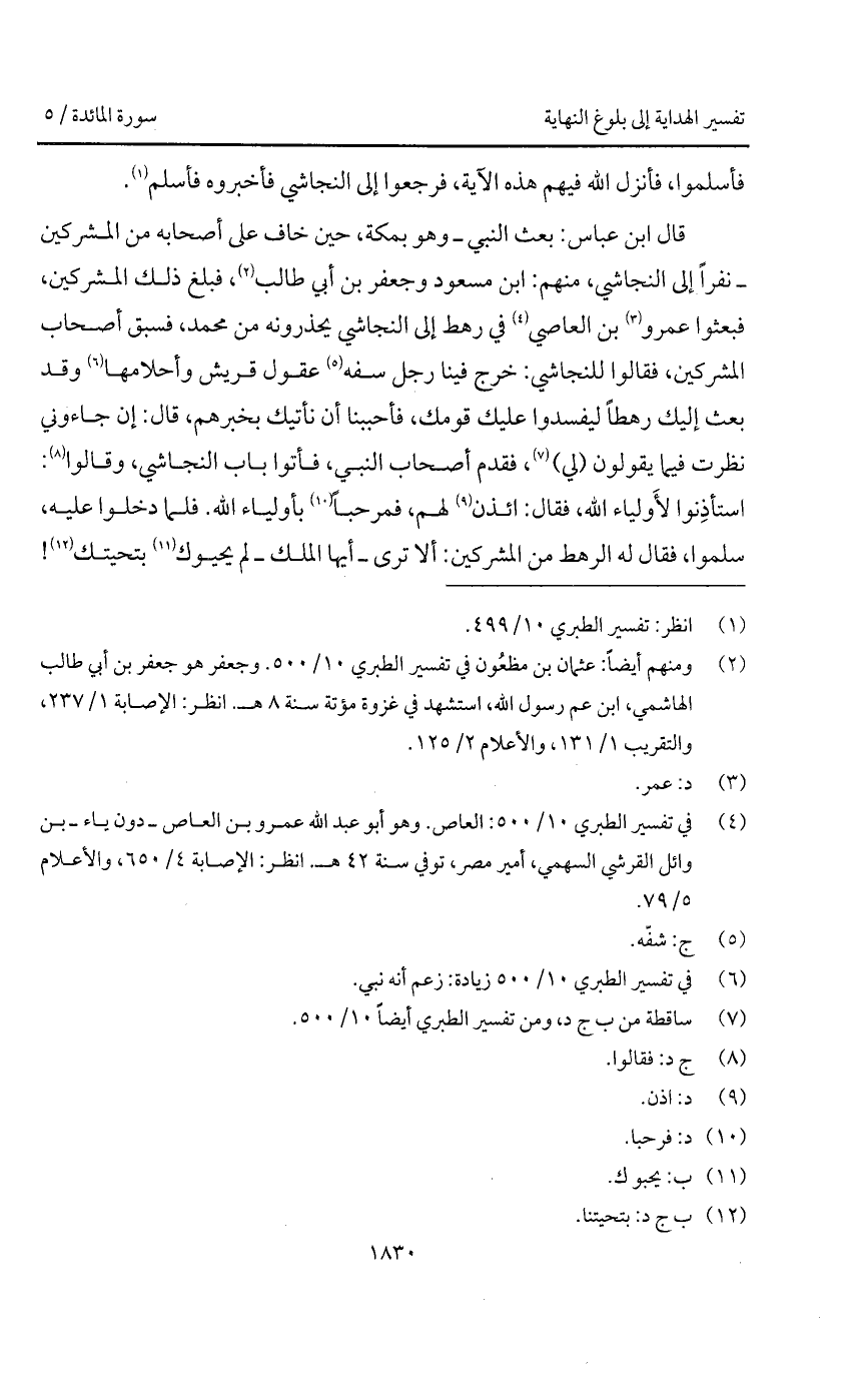 قال ابن عباس: بعث النبي - وهو بمكة، حين خاف على أصحابه من المشركين - نفراً إلى النجاشي، منهم: ابن مسعود وجعفر بن أبي طالب، فبلغ ذلك المشركين، فبعثوا عمرو بن العاصي في رهط إلى النجاشي يحذرونه من محمد، فسبق أصحاب المشركين، فقالوا للنجاشي: خرج فينا رجل سفه عقول قريش وأحلامها وقد بعث إليك رهطاً ليفسدوا عليك قومك، فأحببنا أن نأتيك بخبرهم، قال: إن جاءوني نظرت فيما يقولون (لي)، فقدم أصحاب النبي، فأتوا باب النجاشي، وقالوا: استأذِنوا لأَولياء الله، فقال: ائذن لهم، فمرحباً بأولياء الله. فلما دخلوا عليه، سلموا، فقال له الرهط من المشركين: ألا ترى - أيها الملك - لم يحيوك بتحيتك!