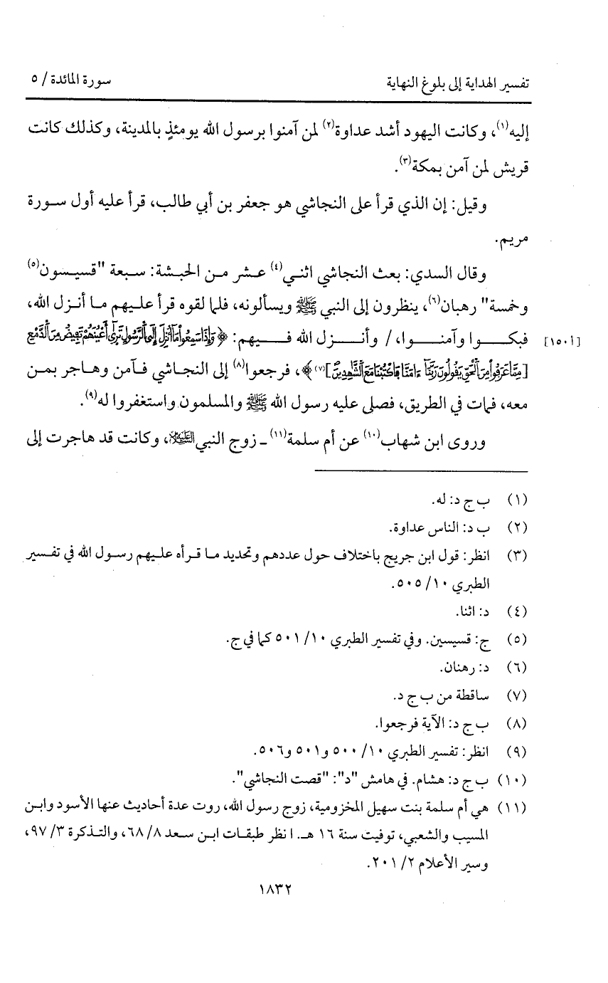 وقال السدي: بعث النجاشي اثني عشر من الحبشة: سبعة " قسيسون وخمسة " رهبان، ينظرون إلى النبي A ويسألونه، فلما لقوه قرأ عليهم ما أنزل الله، فبكوا وآمنوا، / وأنزل الله فيهم: {وَإِذَا سَمِعُواْ مَآ أُنزِلَ إِلَى الرسول ترى أَعْيُنَهُمْ تَفِيضُ مِنَ الدمع [مِمَّا عَرَفُواْ مِنَ الحق يَقُولُونَ رَبَّنَآ آمَنَّا فاكتبنا مَعَ الشاهدين]}، فرجعوا إلى النجاشي فآمن وهاجر بمن معه، فمات في الطريق، فصلى عليه رسول الله A والمسلمون واستغفروا له.