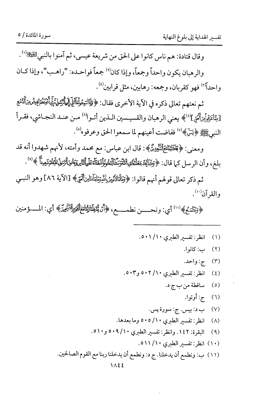 ثم نعتهم تعالى ذكره في الآية الأخرى فقال: {وَإِذَا سَمِعُواْ مَآ أُنزِلَ إِلَى الرسول ترى أَعْيُنَهُمْ تَفِيضُ مِنَ الدمع [مِمَّا عَرَفُواْ مِنَ الحق]} يعني الرهبان والقسيسين الذين أتوا من عند النجاشي، فقرأ النبي A { يس} [يس: 1] ففاضت أعينهم لما سمعوا الحق وعرفوه.
