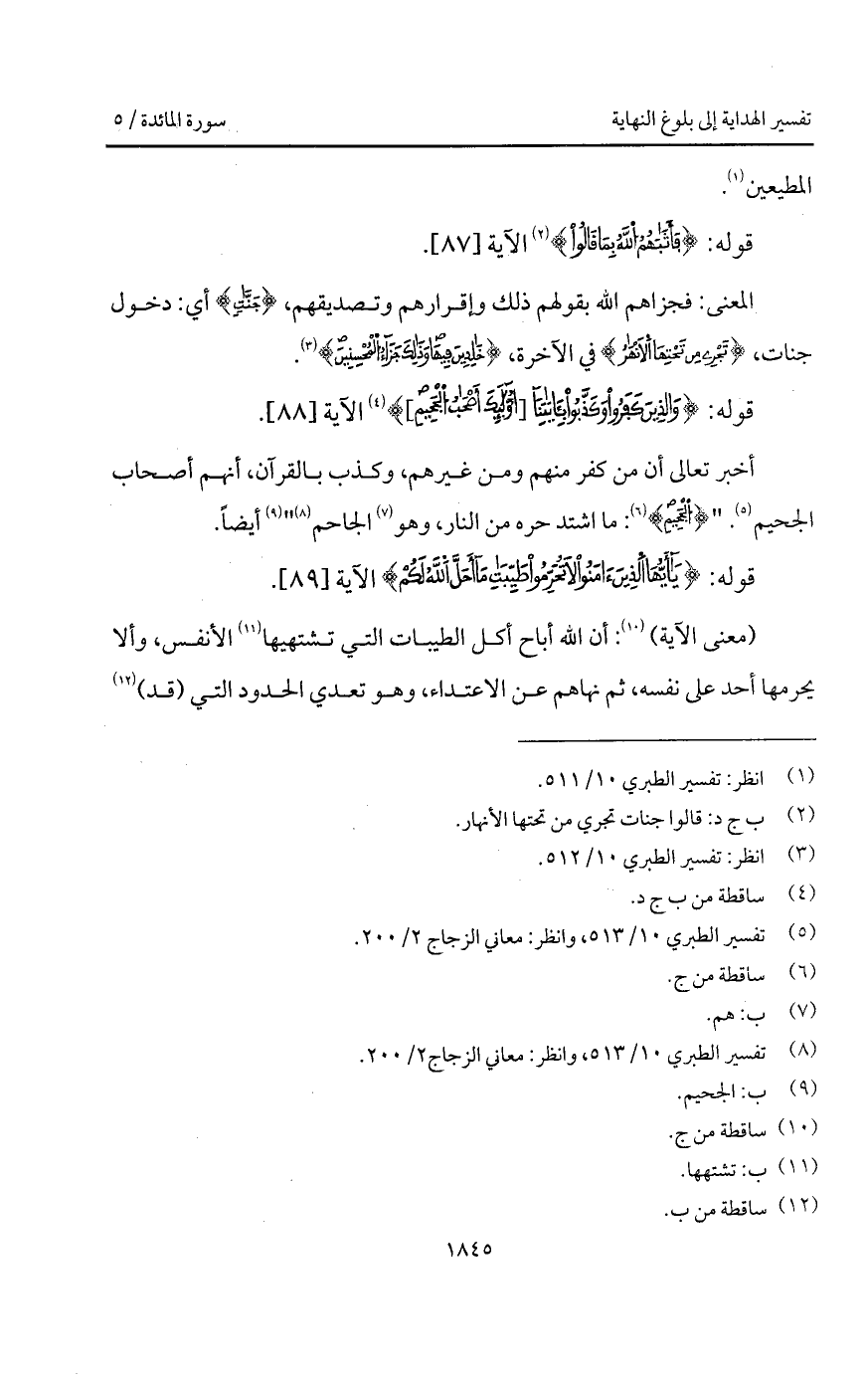 (معنى الآية): أن الله أباح أكل الطيبات التي تشتهيها الأنفس، وألا يحرمها أحد على نفسه، ثم نهاهم عن الاعتداء، وهو تعدي الحدود التي (قد)