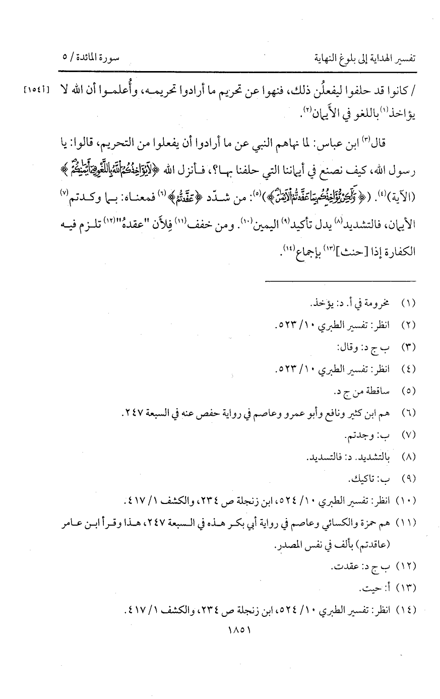 قال ابن عباس: لما نهاهم النبي عن ما أرادوا أن يفعلوا من التحريم، قالوا: يا رسول الله، كيف نصنع في أيماننا التي حلفنا بها؟، فأنزل الله {لاَ يُؤَاخِذُكُمُ الله باللغو في أَيْمَانِكُمْ} (الآية). ({ولكن يُؤَاخِذُكُم بِمَا عَقَّدتُّمُ الأيمان}): من شدّد {عَقَّدتُّمُ} فمعناه: بما وكدتم الأيمان، فالتشديد يدل على تأكيد اليمين. ومن خفف فِلأَن " عقدهُ " تلزم فيه الكفارة إذا [حنث] بإجماع.