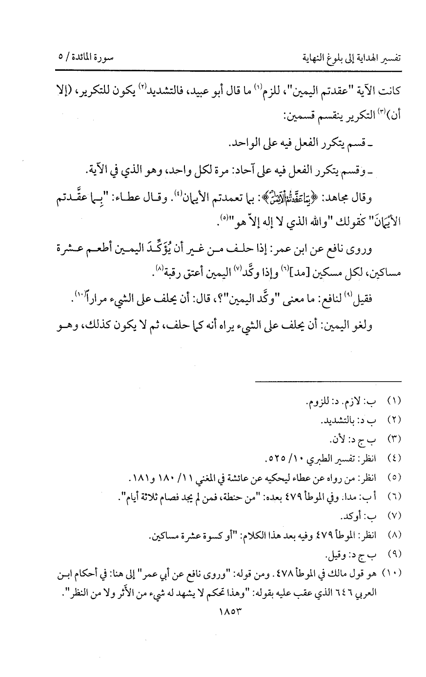 فقيل لنافع: ما معنى " وكَّد اليمين "؟، قال: أن يحلف على الشيء مراراً.