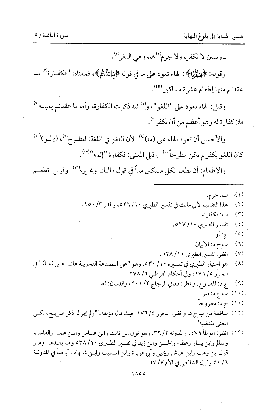 والأحسن أن تعود الهاء على (ما): لأن اللغو في اللغة: المطرح، (ولو) كان اللغو يكفر لم يكن مطرحاً. وقيل المعنى: فكفارة " إثمه ".