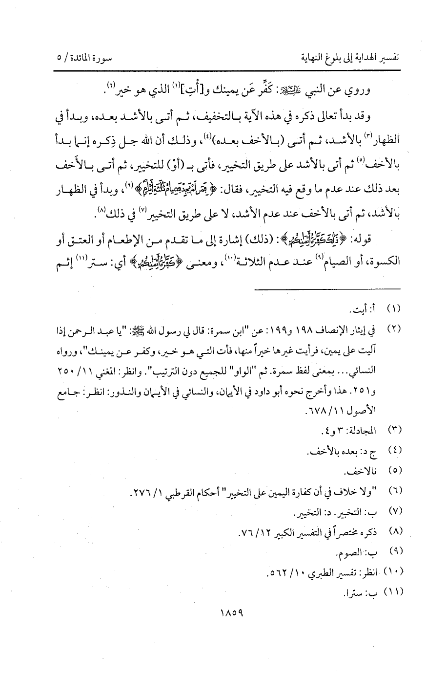 وقد بدأ تعالى ذكره في هذه الآية بالتخفيف، ثم أتى بالأشد بعده، وبدأ في الظهار بالأشد، ثم أتى (بالأخف بعده)، وذلك أن الله جل ذِكره إنما بدأ بالأخف ثم أتى بالأشد على طريق التخيير، فأتى بـ (أوْ) للتخيير، ثم أتى بالأَخف بعد ذلك عند عدم ما وقع فيه التخيير، فقال: {فَمَن لَّمْ يَجِدْ فَصِيَامُ ثَلاَثَةِ أَيَّامٍ}، وبدأ في الظهار بالأشد، ثم أتى بالأخف عند عدم الأشد، لا على طريق التخيير في ذلك.
