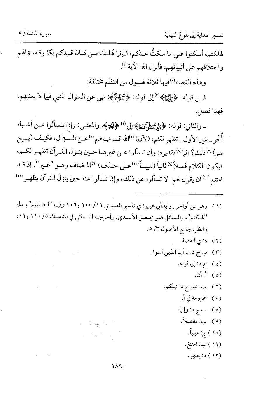 فمن قوله: {يا أيها} إلى قوله: {تَسُؤْكُمْ}: نهى عن السؤال للنبي فيما لا يعنيهم، فهذا فصل.