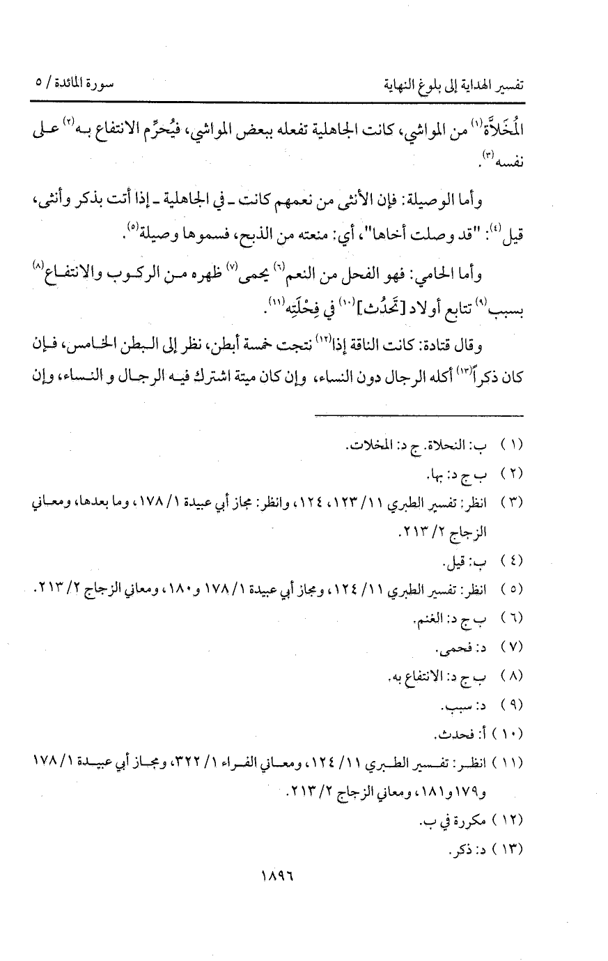 وقال قتادة: كانت الناقة إذا نتجت خمسة أبطن، نظر إلى البطن الخامس، فإن كان ذكراً أكله الرجال دون النساء، وإن كان ميتة اشترك فيه الرجال والنساء، وإن