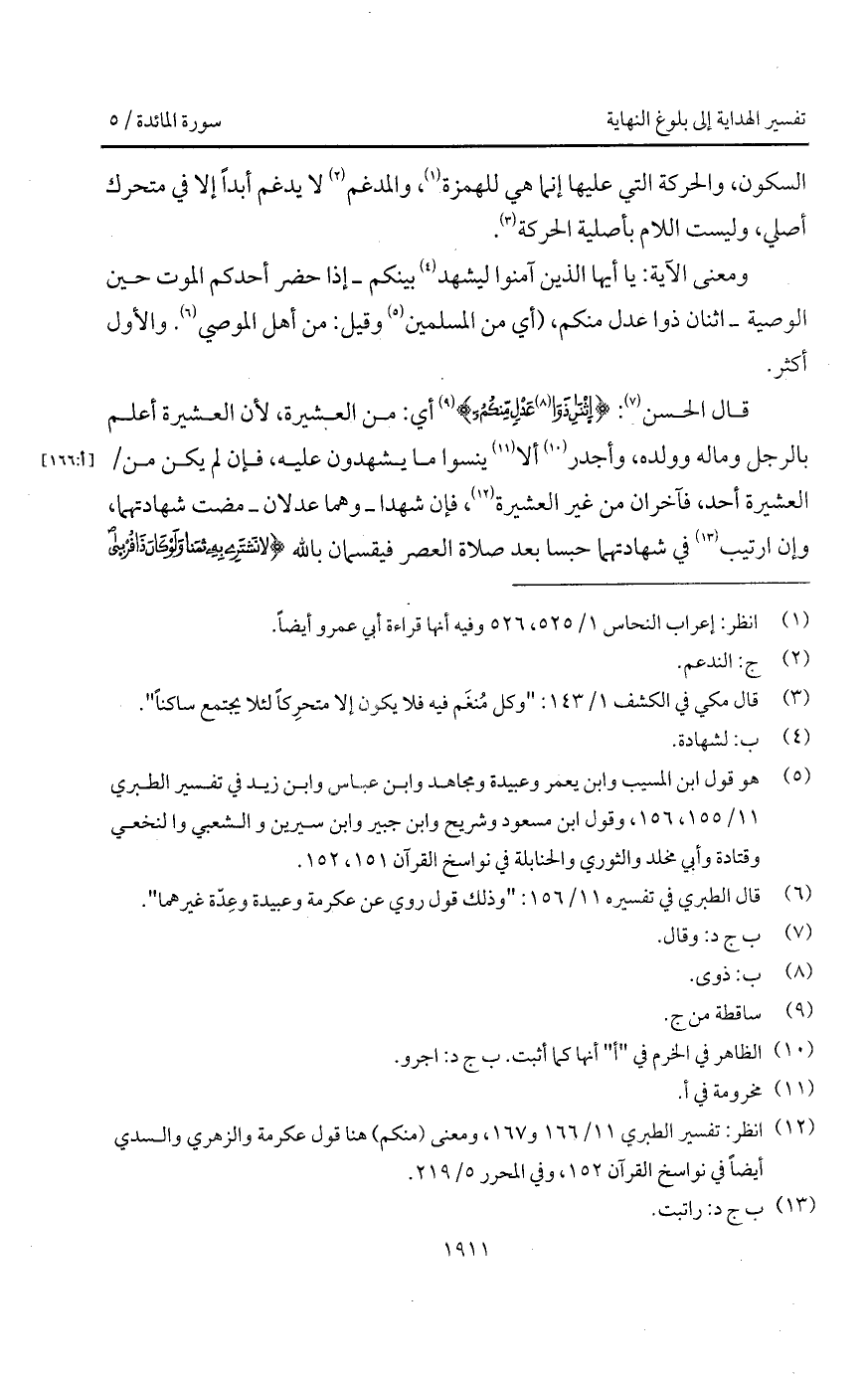 ومعنى الآية: يا أيها الذين آمنوا ليشهد بينكم - إذا حضر أحدكم الموت حين الوصية - اثنان ذوا عدل منكم، (أي من المسلمين وقيل: من أهل الموصي. والأول أكثر.