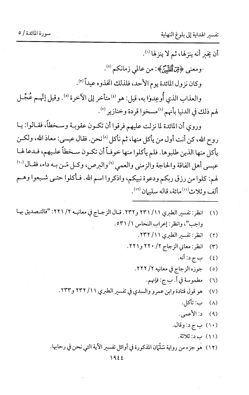 وروي أن المائدة لما نزلت عليهم فرقوا أن تكون عقوبة وسخطاً، فقالوا: يا روح الله، كن أنت أول من يأكل منها، ثم نأكل نحن. فقال عيسى: معاذ الله، ولكن يأكل منها الذين طلبوها. فلم يأكلوا منها خوفاً أن تكون سخطاً عليهم، فدعا لها عيسى أهل الفاقة والحاجة والزمنى والعمي والبرص، وكل مَن به داء، فقال لهم: كلوا من رزق ربكم ودعوة نبيكم، واذكروا اسم الله. فأكلوا حتى شبعوا وهم ألف وثلاث مائة، قاله سليمان.