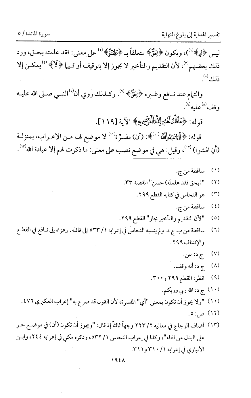 ليس {لِي}، ويكون {بِحَقٍّ} متعلقاً بـ {عَلِمْتَهُ} على معنى: فقد علمته بحق، ورد ذلك بعضهم، لأن التقديم والتأخير لا يجوز إلا بتوقيف أو فيما {لاَ} يمكن إلا ذلك.