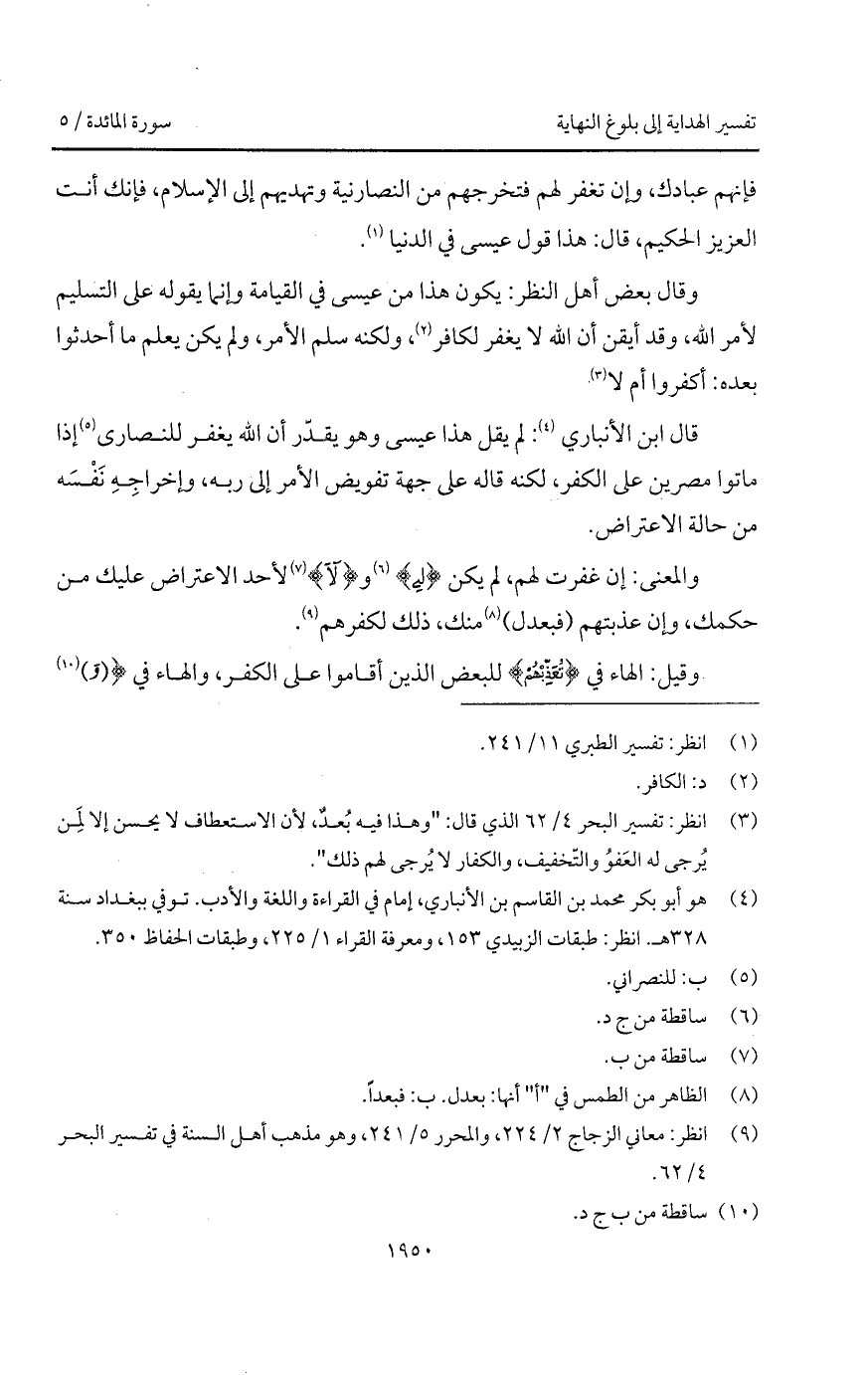 وقال بعض أهل النظر: يكون هذا من عيسى في القيامة وإنما يقوله على التسليم لأمر الله، وقد أيقن أن الله لا يغفر لكافر، ولكنه سلم الأمر، ولم يكن يعلم ما أحدثوا بعده: أكفروا أم لا.