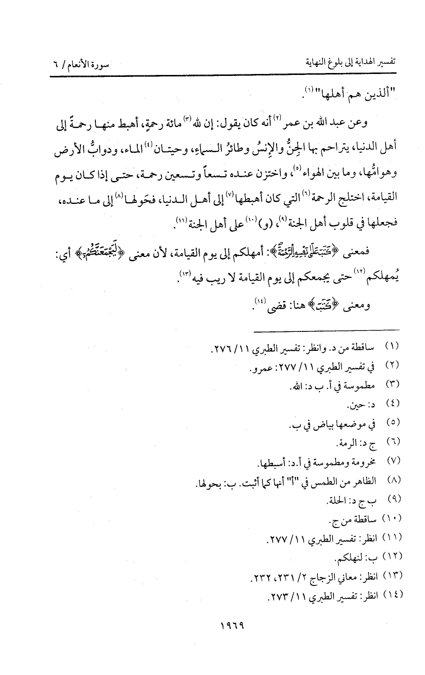 فمعنى {كَتَبَ على نَفْسِهِ الرحمة}: أمهلكم إلى يوم القيامة، لأن معنى {لَيَجْمَعَنَّكُمْ} أي: يُمهلكم حتى يجمعكم إلى يوم القيامة لا ريب فيه.