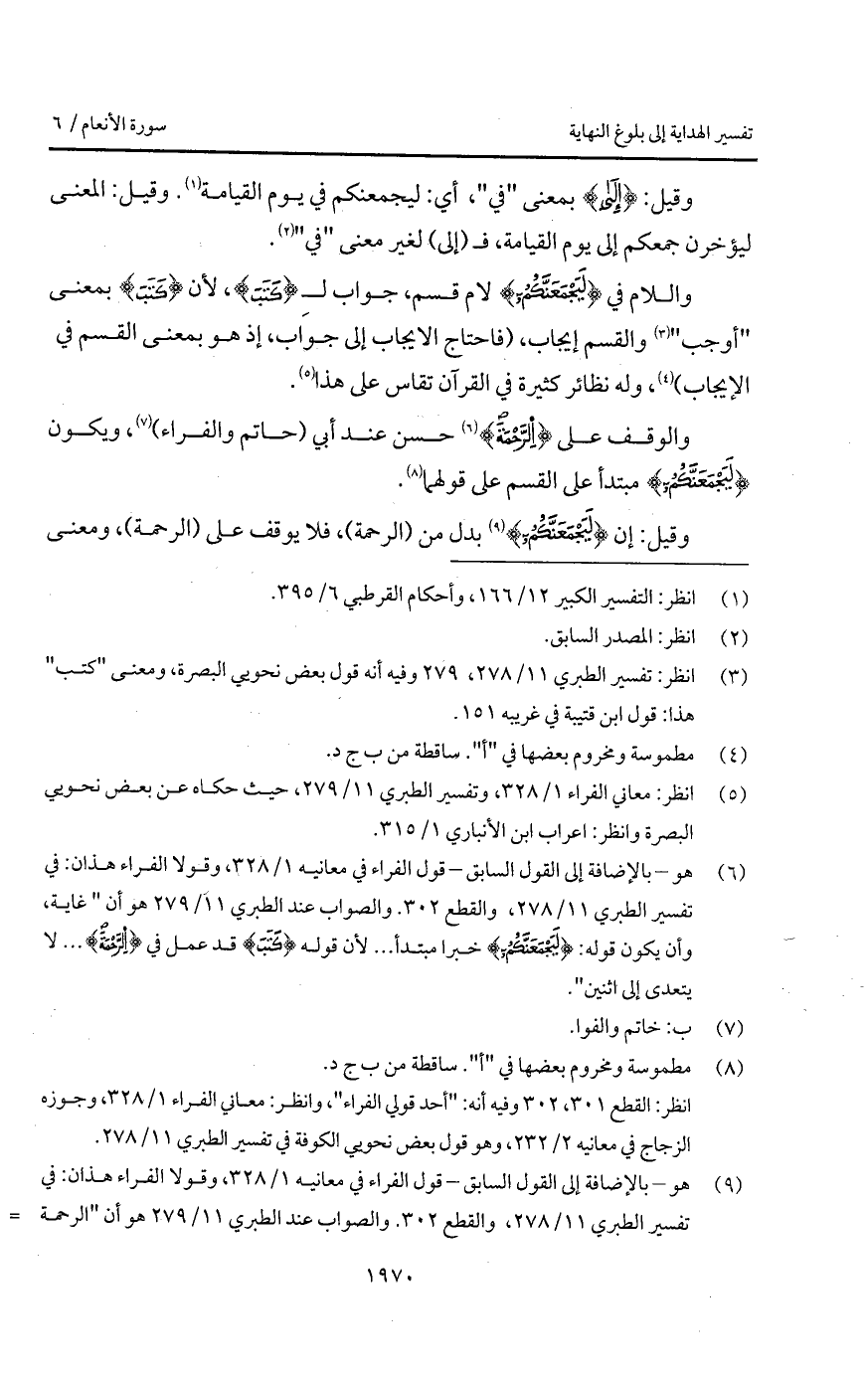 والوقف على {الرحمة} حسن عند أبي (حاتم والفراء)، ويكون {لَيَجْمَعَنَّكُمْ} مبتدأ على القسم على قولهما.
