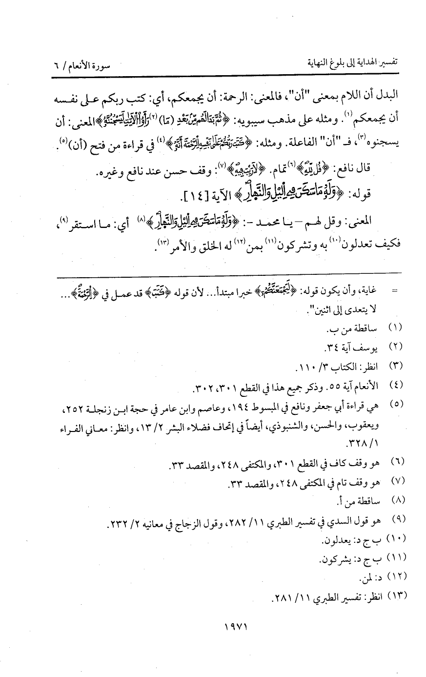 قال نافع: {قُل للَّهِ} تمام. {لاَ رَيْبَ فِيهِ}: وقف حسن عند نافع وغيره.