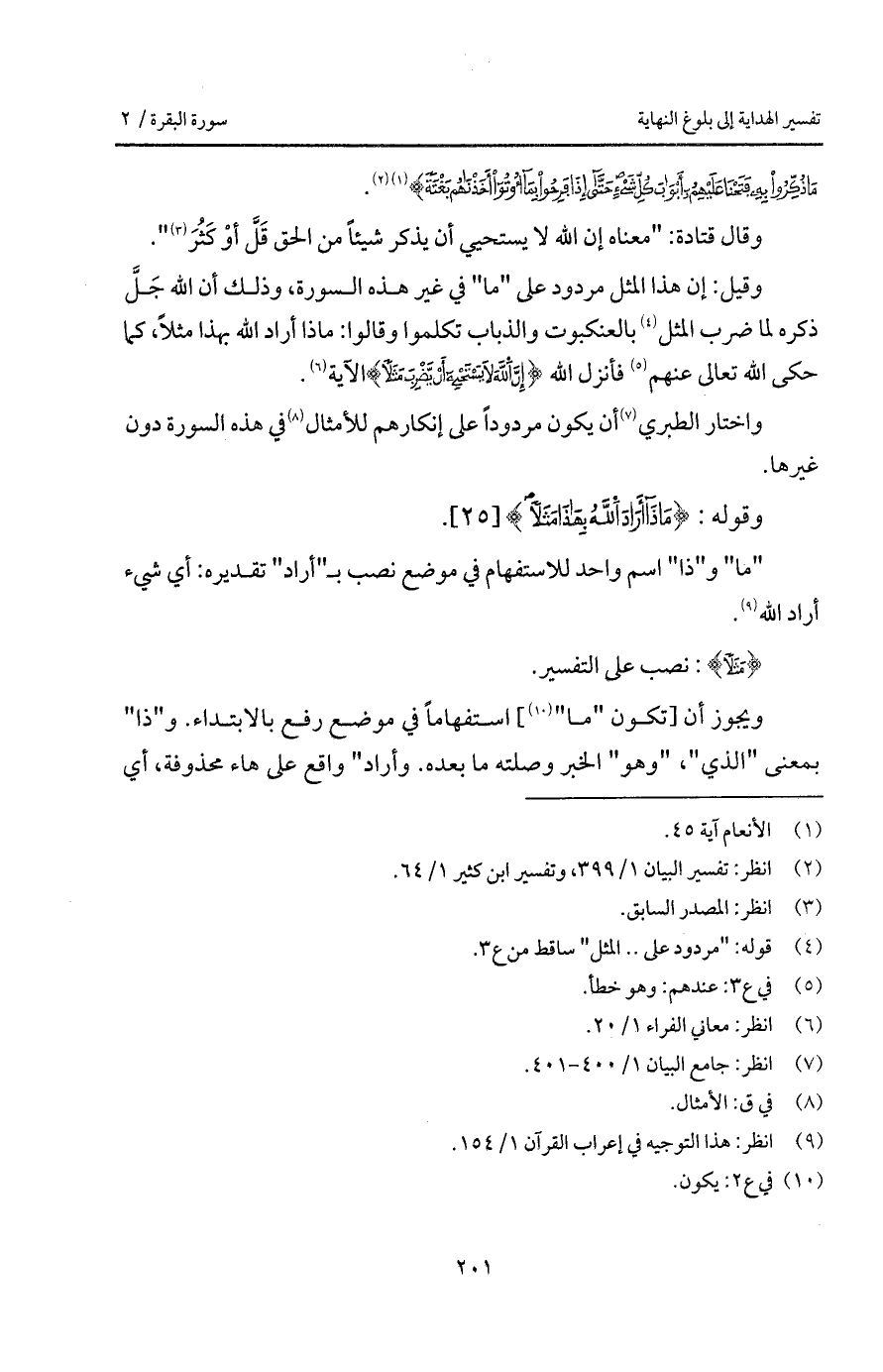 وقيل: إن هذا المثل مردود على " ما " في غير هذه السورة، وذلك أن الله جَلَّ ذكره لما ضرب المثل بالعنكبوت والذباب تكلموا وقالوا: ماذا أراد الله بهذا مثلاً، كما حكى الله تعالى عنهم فأنزل الله {إِنَّ الله لاَ يَسْتَحْى أَن يَضْرِبَ مَثَلاً} الآية.
