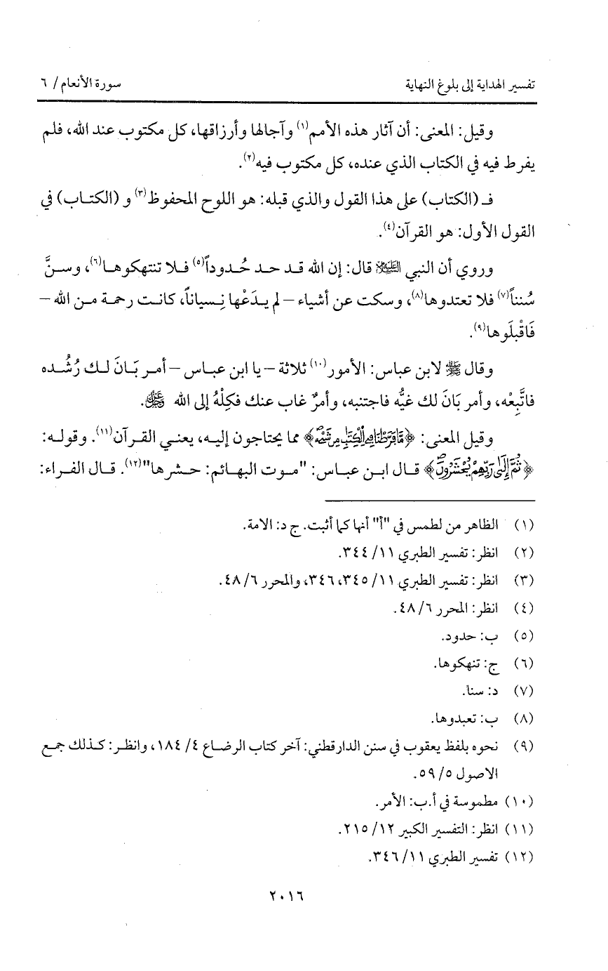 وقيل المعنى: {مَّا فَرَّطْنَا فِي الكتاب مِن شَيْءٍ} مما يحتاجون إليه، يعني القرآن. وقوله {ثُمَّ إلى رَبِّهِمْ يُحْشَرُونَ} قال ابن عباس: " موت البهائم: حشرها ". قال الفراء: