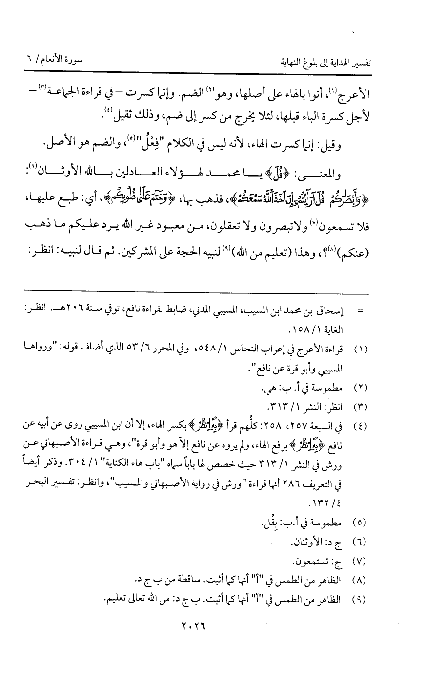 الأعرج، أتوا بالهاء على أصلها، وهو الضم. وإنما كسرت - في قراءة الجماعة - لأجل كسرة الباء قبلها، لئلا يخرج من كسر إلى ضم، وذلك ثقيل.