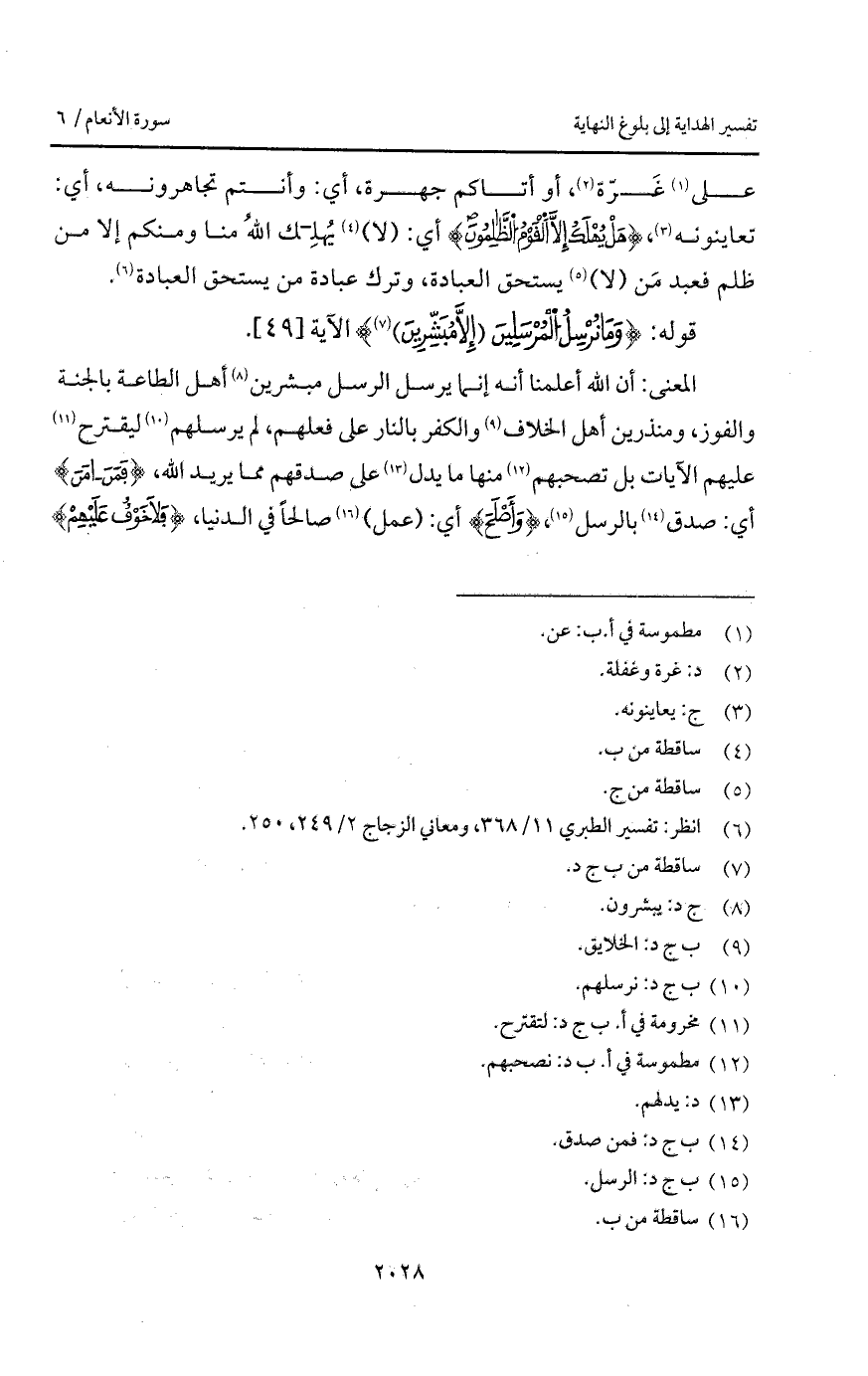 على غَرّة، أو أتاكم جهرة، أي: وأنتم تجاهرونه، أي: تعاينونه، {هَلْ يُهْلَكُ إِلاَّ القوم الظالمون} أي: (لا) يُهلِك اللهُ منا ومنكم إلا من ظلم فعبد مَن (لا) يستحق العبادة، وترك عبادة من يستحق العبادة.