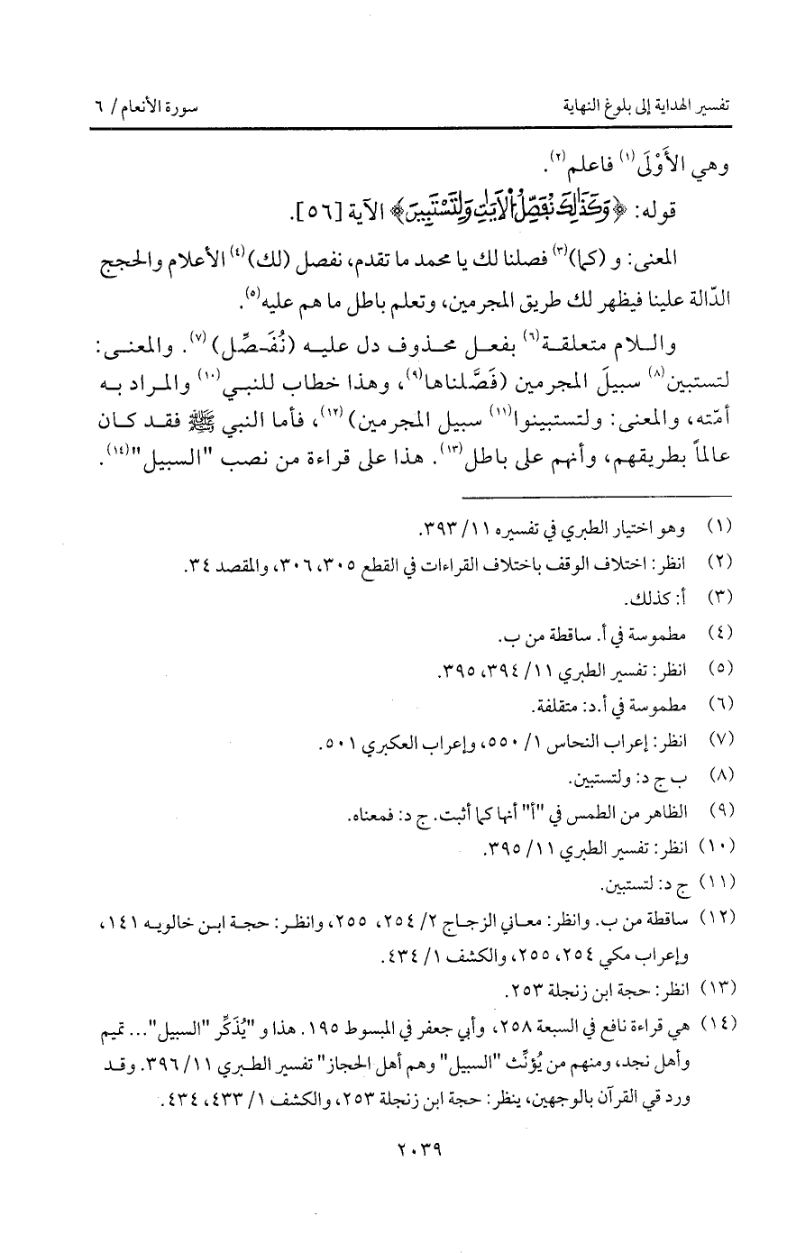 واللام متعلقة بفعل محذوف دل عليه (نُفَصِّل). والمعنى: لتستبين سبيلَ المجرمين (فَصَّلناها، وهذا خطاب للنبي والمراد به أمّته، والمعنى: ولتستبينوا سبيل المجرمين)، فأما النبي A فقد كان عالماً بطريقهم، وأنهم على باطل. هذا على قراءة من نصب " السبيل ".