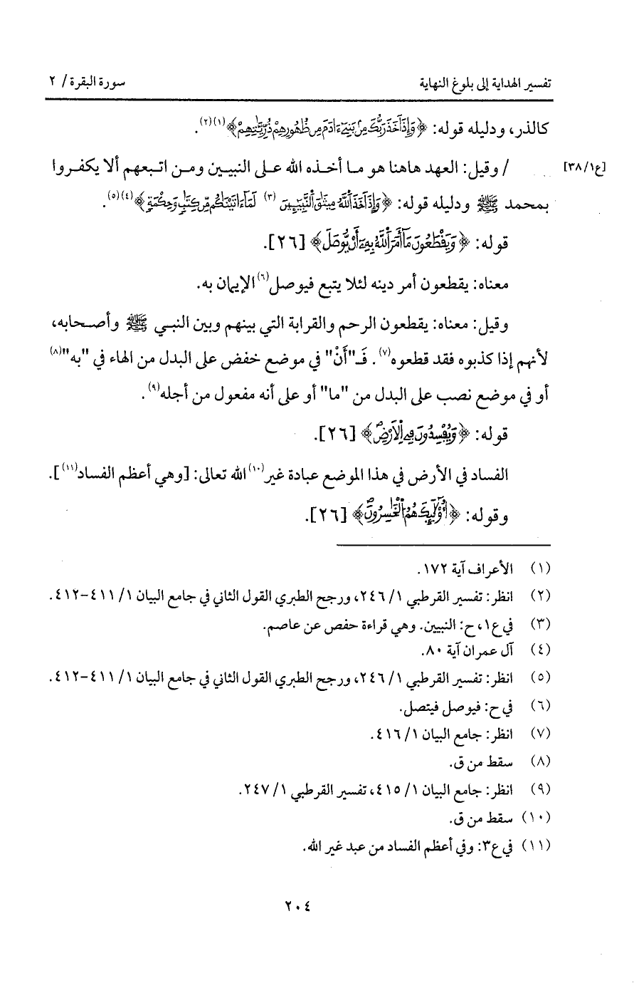 وقيل: معناه: يقطعون الرحم والقرابة التي بينهم وبين النبي A وأصحابه، لأنهم إذا كذبوه فقد قطعوه. فَ " أَنْ " في موضع خفض على البدل من الهاء في " به " أو في موضع نصب على البدل من " ما " أو على أنه مفعول من أجله.