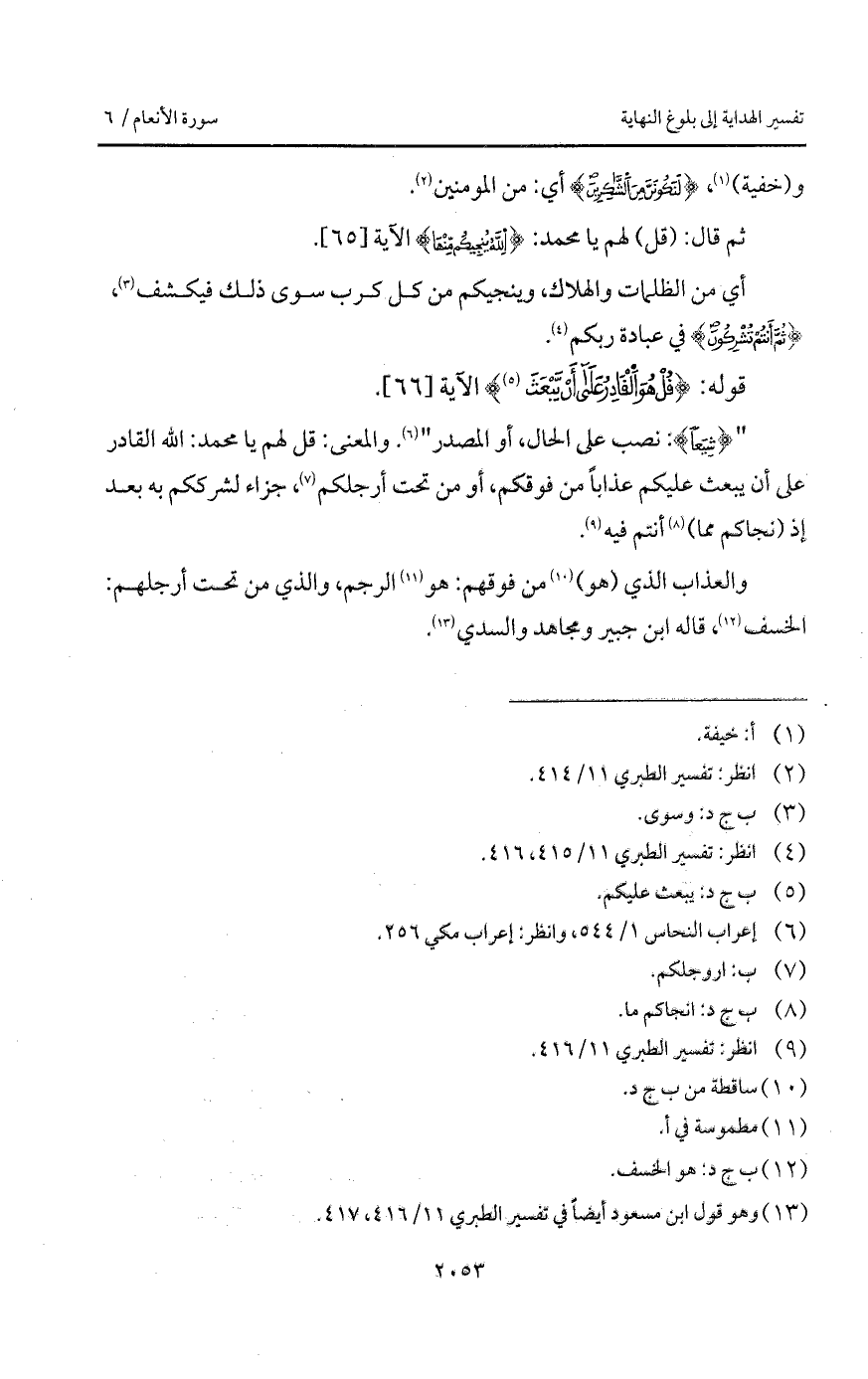 " {شِيَعاً}: نصب على الحال، أو المصدر ". والمعنى: قل لهم يا محمد: الله القادر على أن يبعث عليكم عذاباً من فوقكم، أو من تحت أرجلكم، جزاء لشرككم به بعد إذ (نجاكم مما) أنتم فيه.