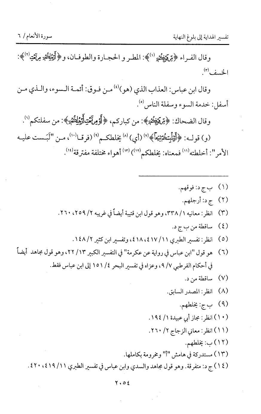 وقال الفراء {مِّن فَوْقِكُمْ}: المطر والحجارة والطوفان، و {مِن تَحْتِ أَرْجُلِكُمْ}: الخسف.