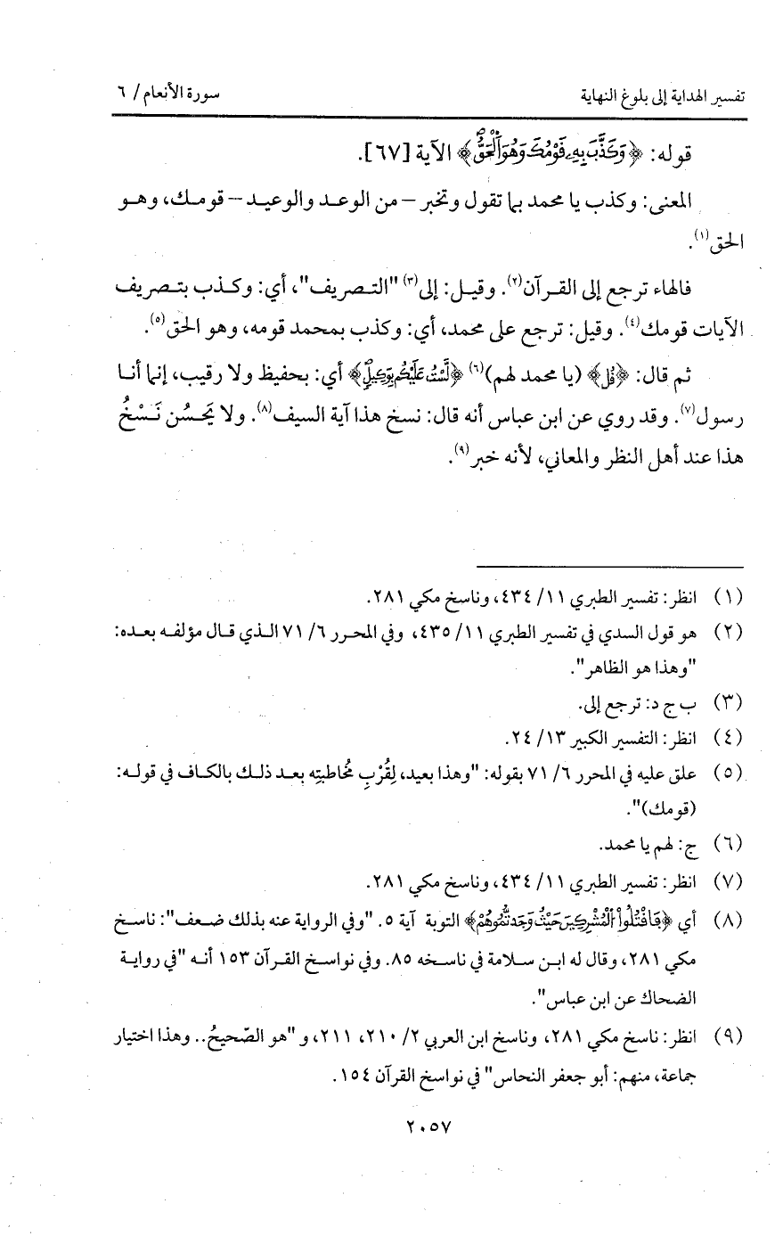 قوله: {وَكَذَّبَ بِهِ قَوْمُكَ وَهُوَ الحق} الآية.
