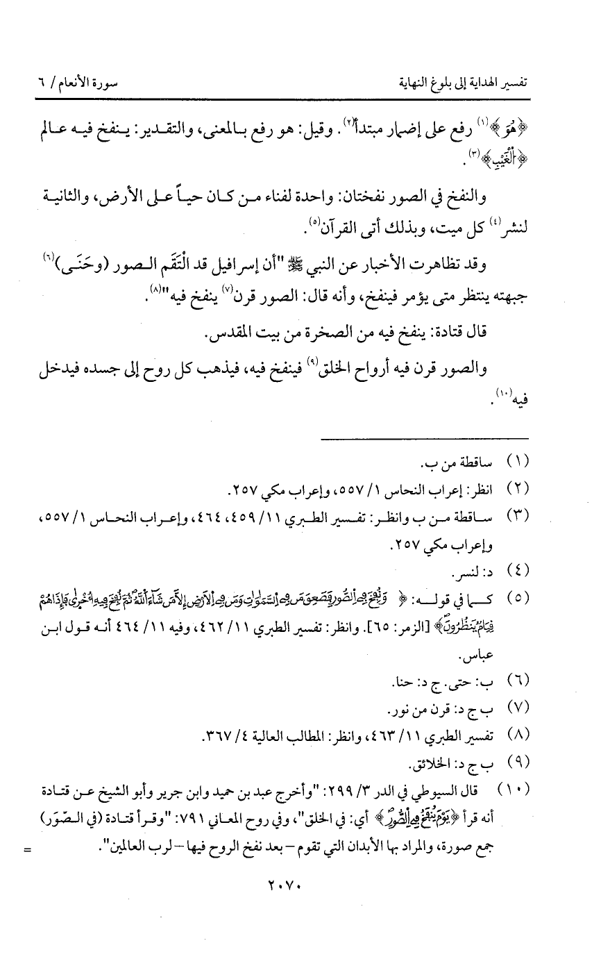 {وَهُوَ} رفع على إضمار مبتدأ. وقيل: هو رفع بالمعنى، والتقدير: ينفخ فيه عالم {الغيب}.