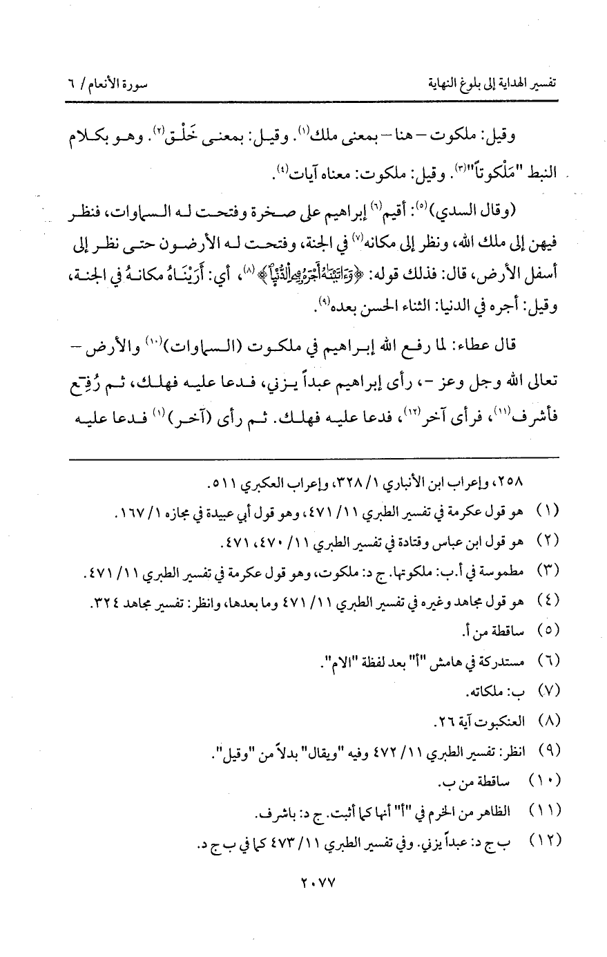 وقيل: ملكوت - هنا - بمعنى ملك. وقيل: بمعنى خَلْق. وهو بكلام النبط " مَلْكوتاً ". وقيل: ملكوت: معناه آيات.