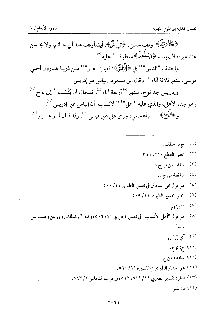 {كُلاًّ هَدَيْنَا}: وقف حسن، {وَإِلْيَاسَ}: أيضاً وقف عند أبي حاتم، ولا يحسن عند غيره، لأن بعده {وَإِسْمَاعِيلَ} معطوف عليه.