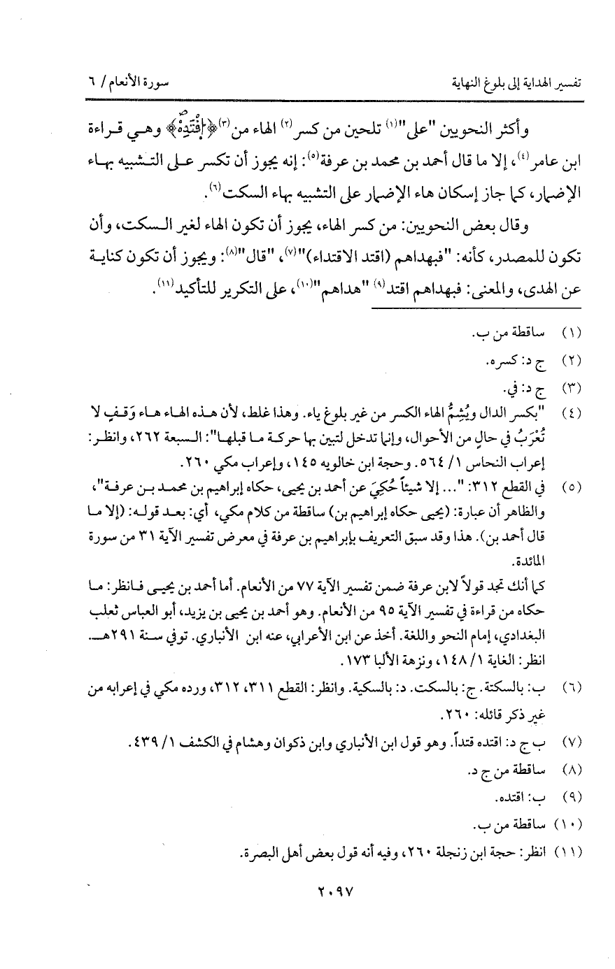 وأكثر النحويين " على " تلحين " من كسر الهاء من {اقتده} وهي قراءة ابن عامر، إلا ما قال أحمد بن محمد بن عرفة: إنه يجوز أن تكسر على التشبيه بهاء الإضمار، كما جاز إسكان هاء الإضمار على التشبيه بهاء السكت.