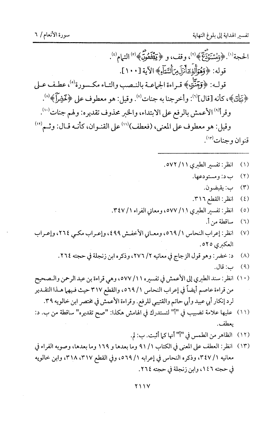 قوله: {وجنات} قراءة الجماعة بالنصب والتاء مكسورة، عطف على {نَبَاتَ}، كأنه [قال]: وأخرجنا به جنات. وقيل: هو معطوف على {خَضِراً}.