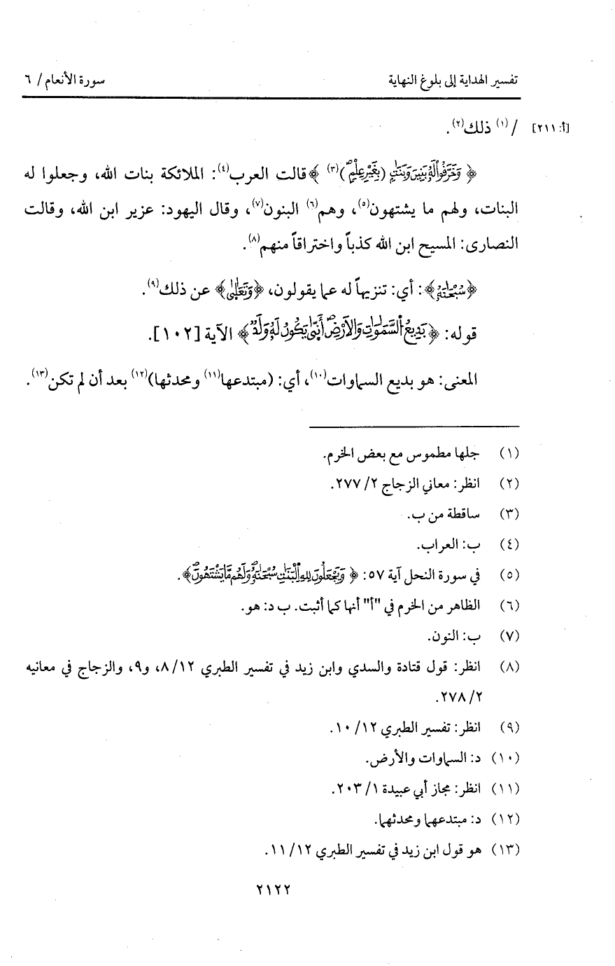 {وَخَرَقُواْ لَهُ بَنِينَ وبنات (بِغَيْرِ عِلْمٍ)} قالت العرب: الملائكة بنات الله، وجعلوا له البنات، ولهم ما يشتهون، وهم البنون، وقال اليهود: عزير ابن الله، وقالت النصارى: المسيح ابن الله كذباً واختراقاً منهم.