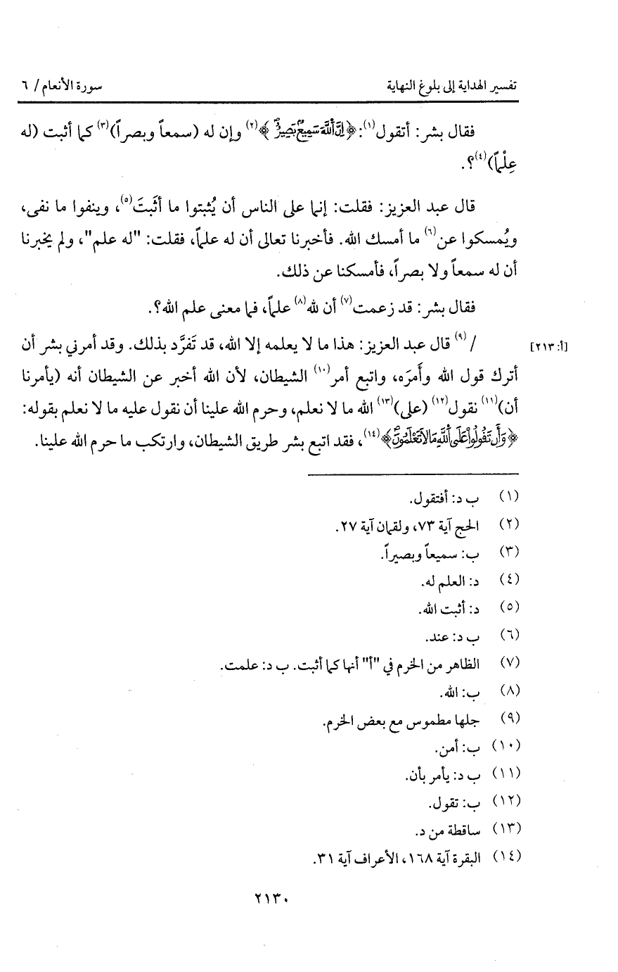 فقال بشر: أتقول: {إِنَّ الله سَمِيعٌ بَصِيرٌ} [الحج: 75، لقمان: 28] وإن له (سمعاً وبصراً) كما أثبت (له عِلْماً)؟.