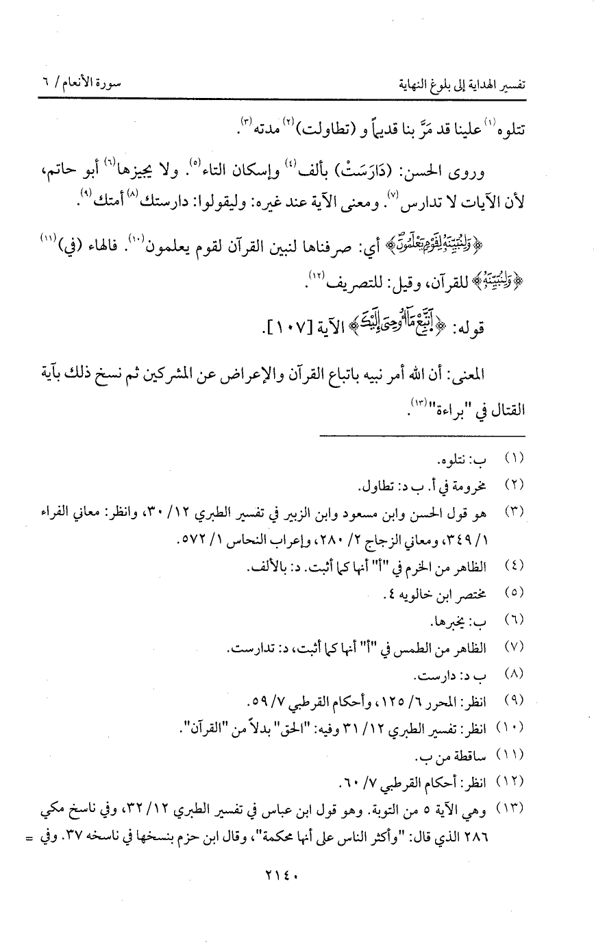 وروى الحسن: (دَارَسَتْ) بألف وإسكان التاء. ولا يجيزها أبو حاتم، لأن الآيات لا تدارس. ومعنى الآية عند غيره: وليقولوا: دارستك أمتك.